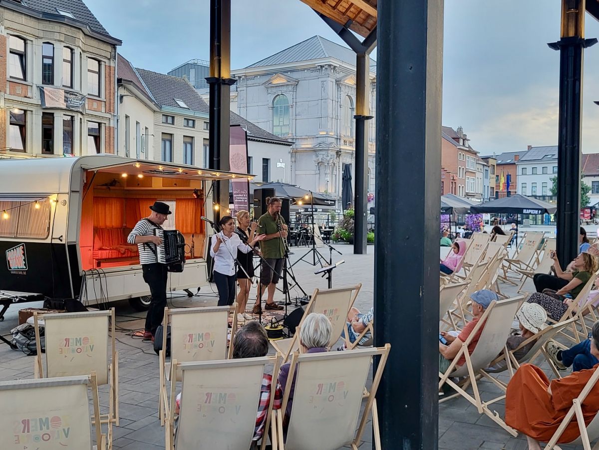 Devant une roulotte sur la place du marché, Mec Yek a transformé la nuit en une tapisserie de voix avec Katia, Milka et Piet dans une riche harmonie à trois voix, portée par l'énergie brute et émouvante du quatuor.