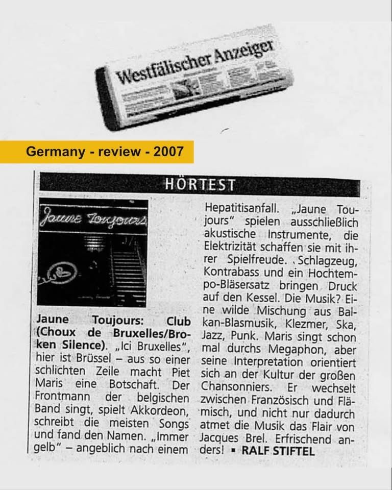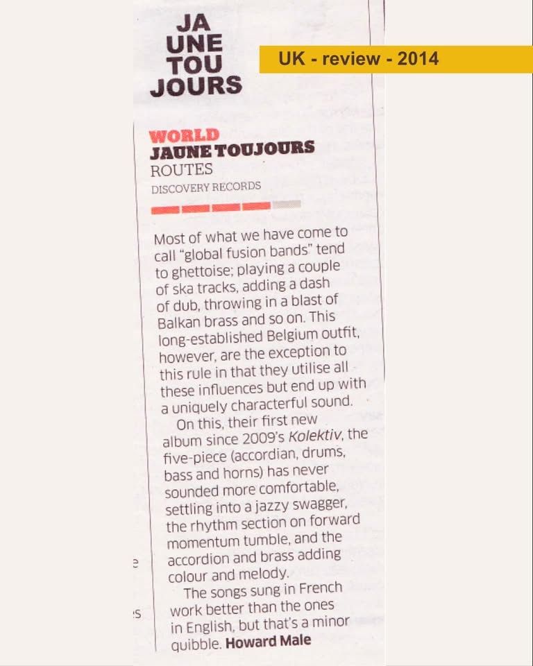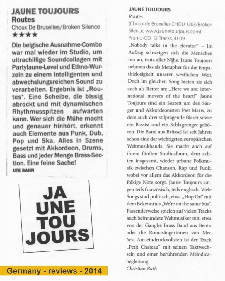 2014 Les critiques traversent les frontières. Quatre étoiles. Allemand. Anglais. Même rythme. Anvers. Soirée de lancement de l'album.