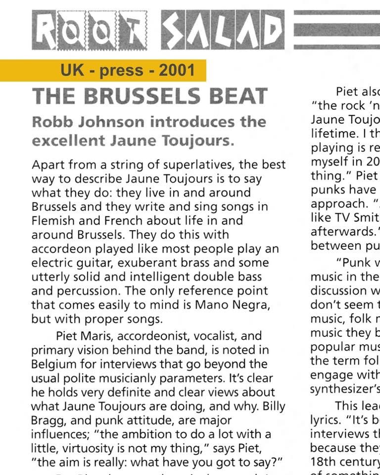 2001 Présenté au Royaume-Uni par Robb Johnson. fROOTS écoute. Le rythme bruxellois.