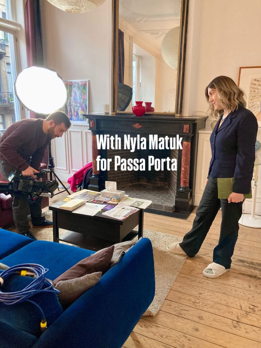 Dans les coulisses avec la poète et romancière canadienne Nyla Matuk, lors du tournage de son portrait vidéo pour Passa Porta, Maison internationale de la littérature à Bruxelles.