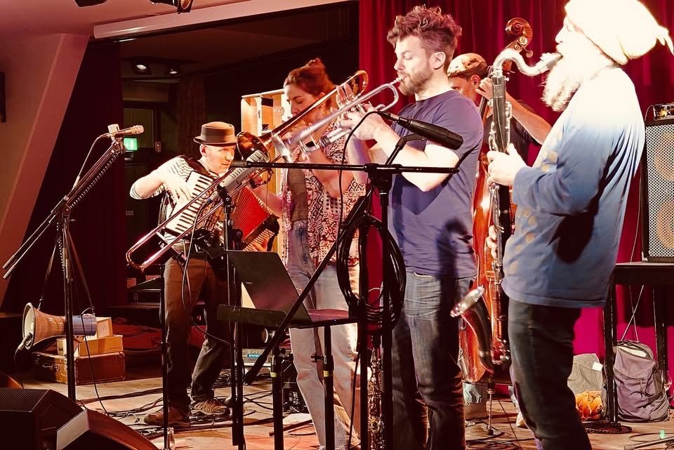 Après une panne de voiture et une arrivée à Liège tout juste à temps pour jouer (1 voiture en moins, Dirk le trompettiste et sa camionnette à la rescousse) : quelques photos de Jaune Toujours à Liège Brasserie Sauvenière (Les Grignoux)*
