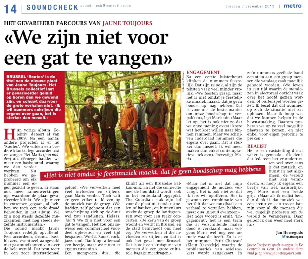 Metrotime interviewed Jaune Toujours about the new album ROUTES.